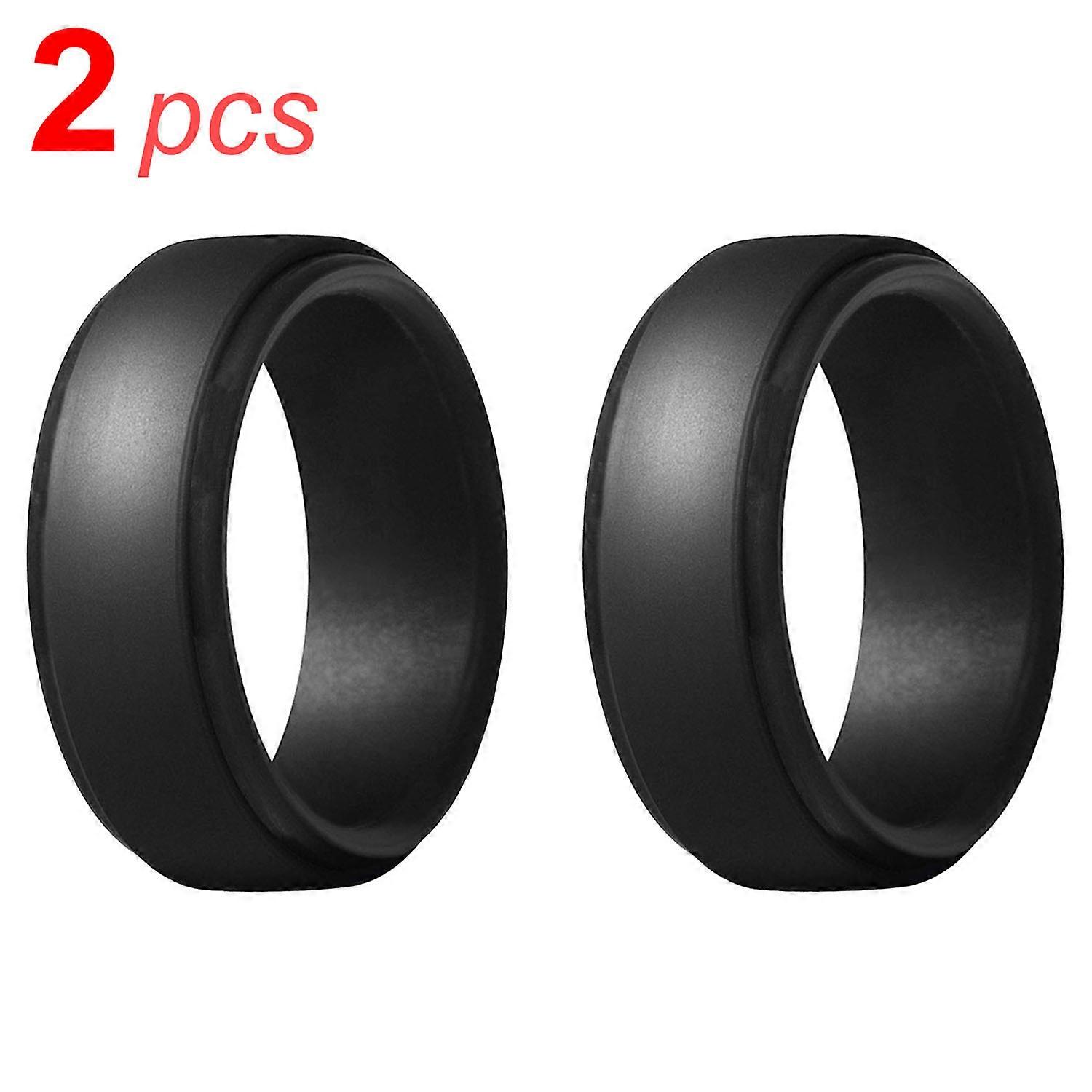 2 PCS Black Silicone Men's Wedding Bands - Soft Comfortable Fit for Sizes 7-14 Jewelry Halloween