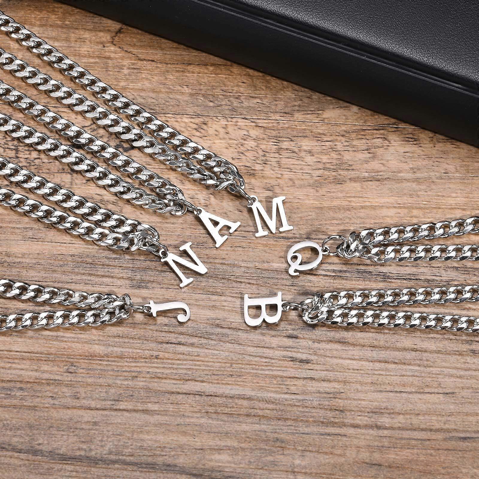Initials Cuban Chain Necklaces for Men Boys,Waterproof A-Z 26 Alphabet Charm Pendant with 50cm/19.7" Stainless Steel Chain Gifts