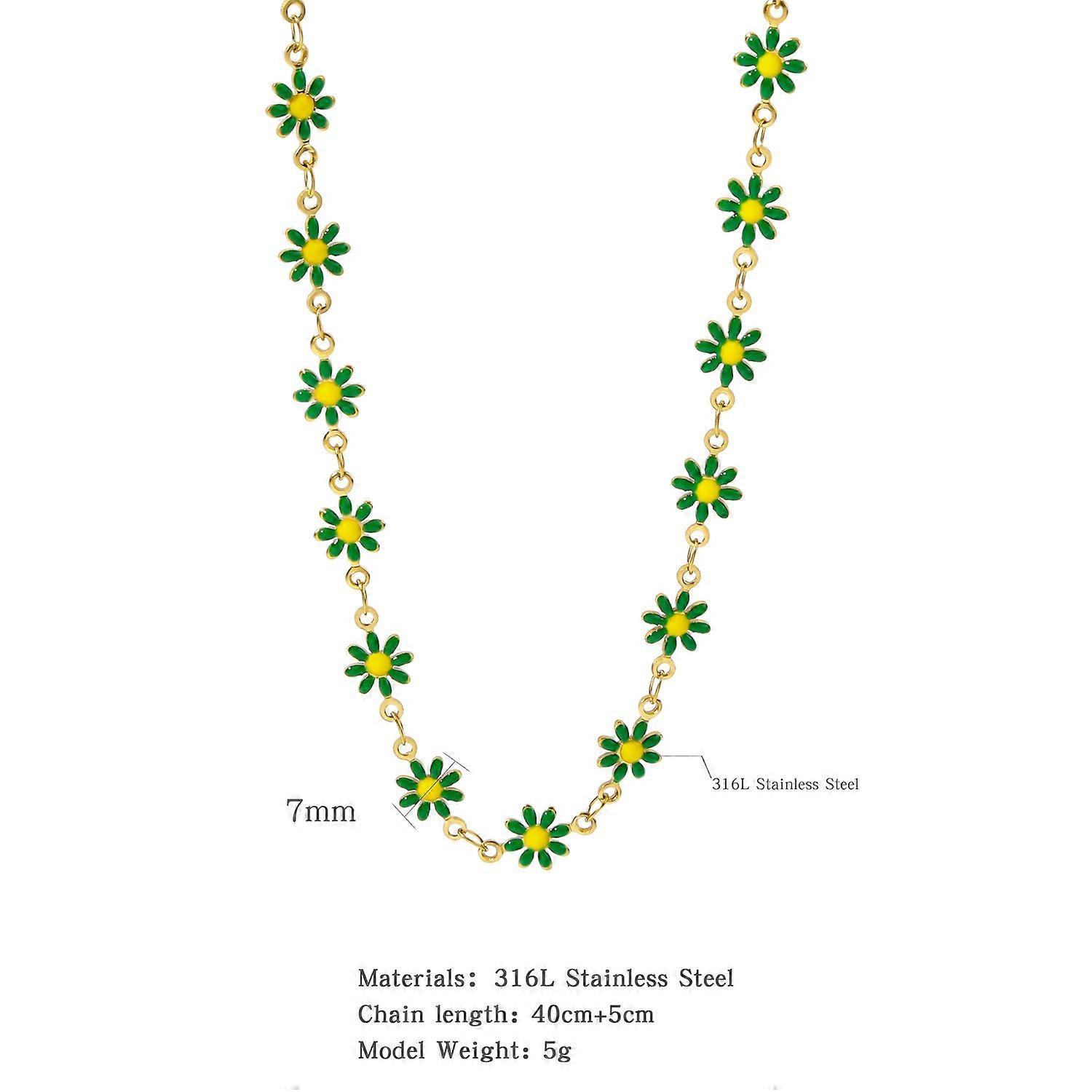HONGTONG Daisy Colorful Necklace Women Bohemian Charm 18k Gold Plated Chain Stainless Steel Jewelry Cute Girl Accessories Gift