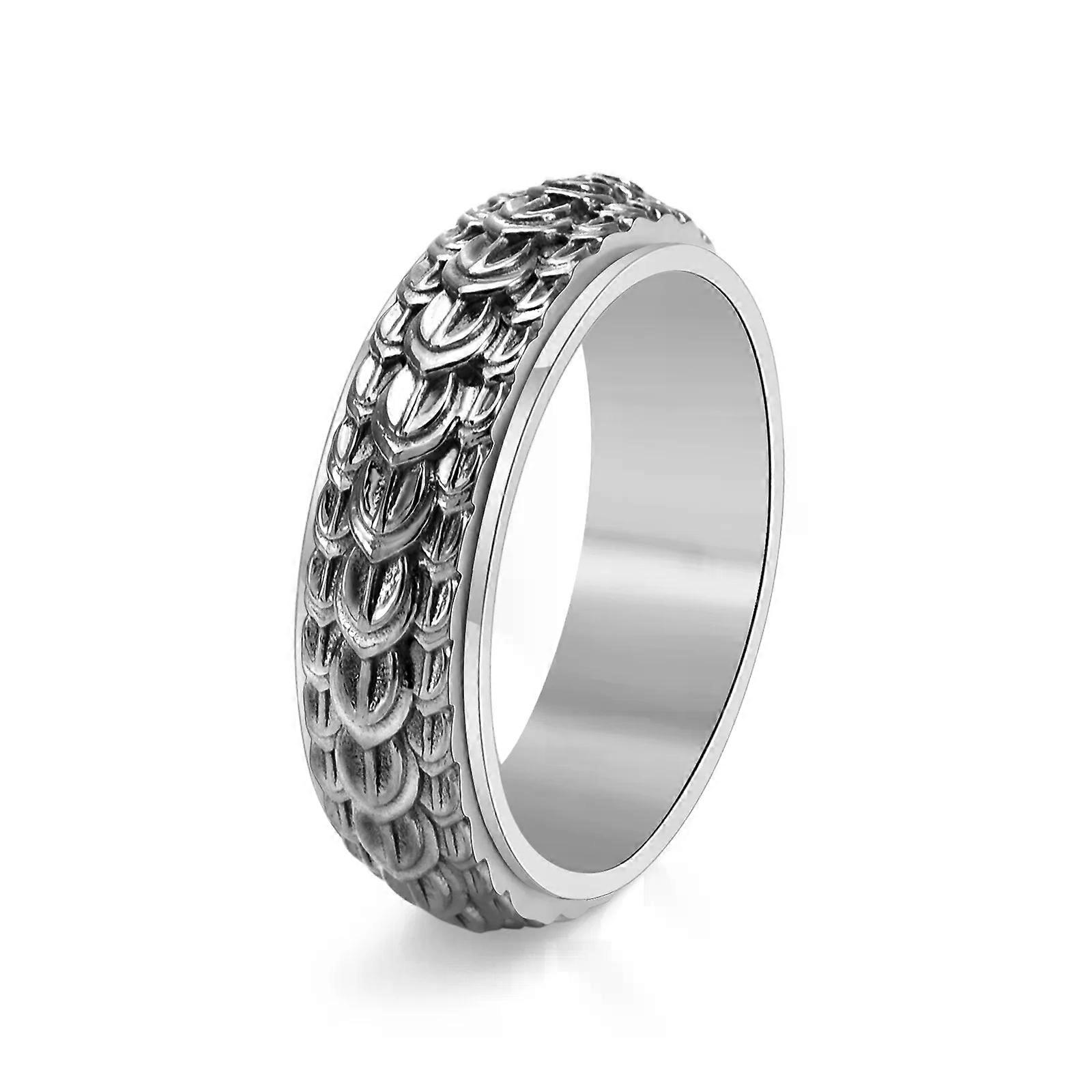 Dragon Scale Anxiety Ring for Men Women Cool Black Blue Gold Plated Stainless Steel Snake Dragon Scales Spinner Fidget Ring