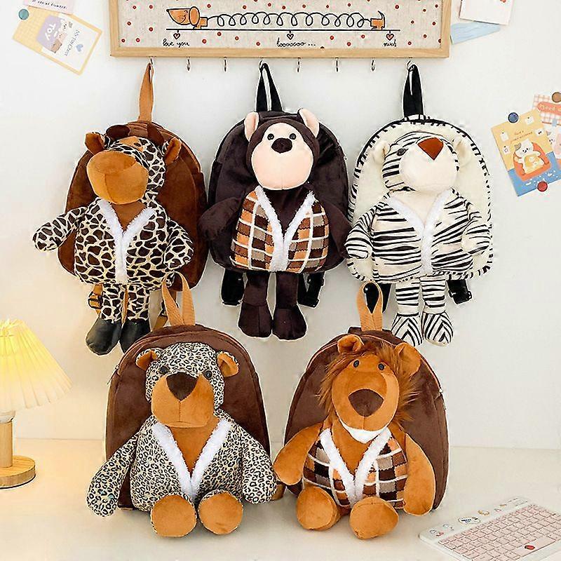 Kids Cartoon Animal Plush Backpack, Cute Breathable Storage, Lion Zebra Giraffe Leopard Monkey Pattern, 28*6*45cm
