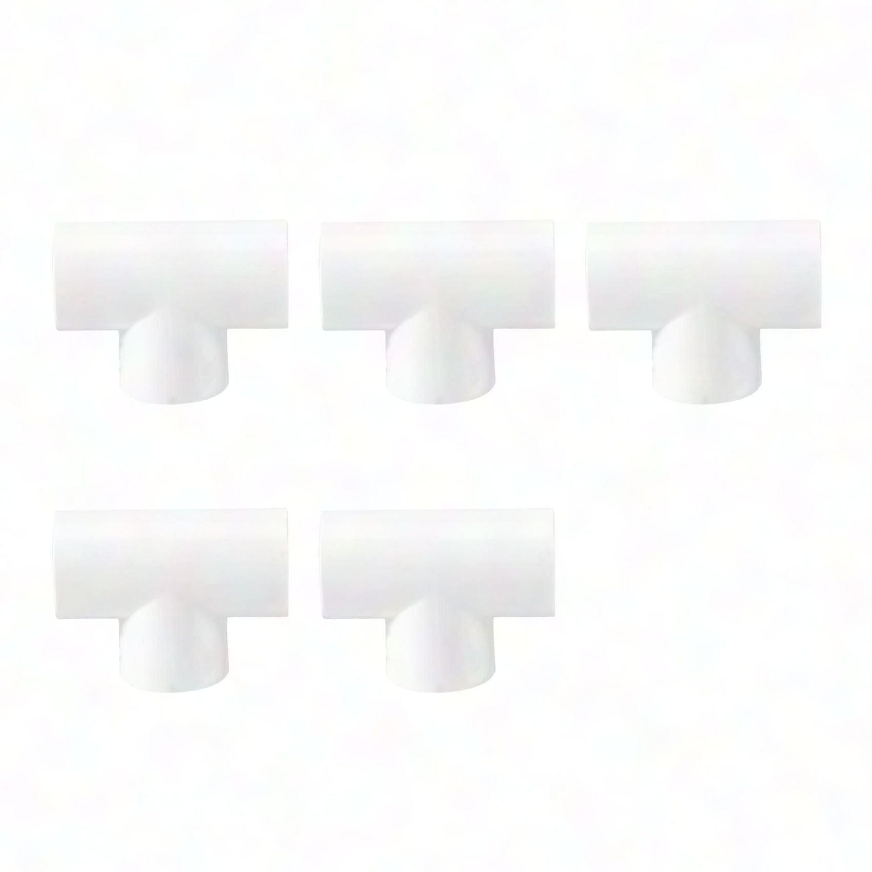 20mm PVC Tee 3-Way Water Pipe Tube Adapter Connectors White 5 Pcs