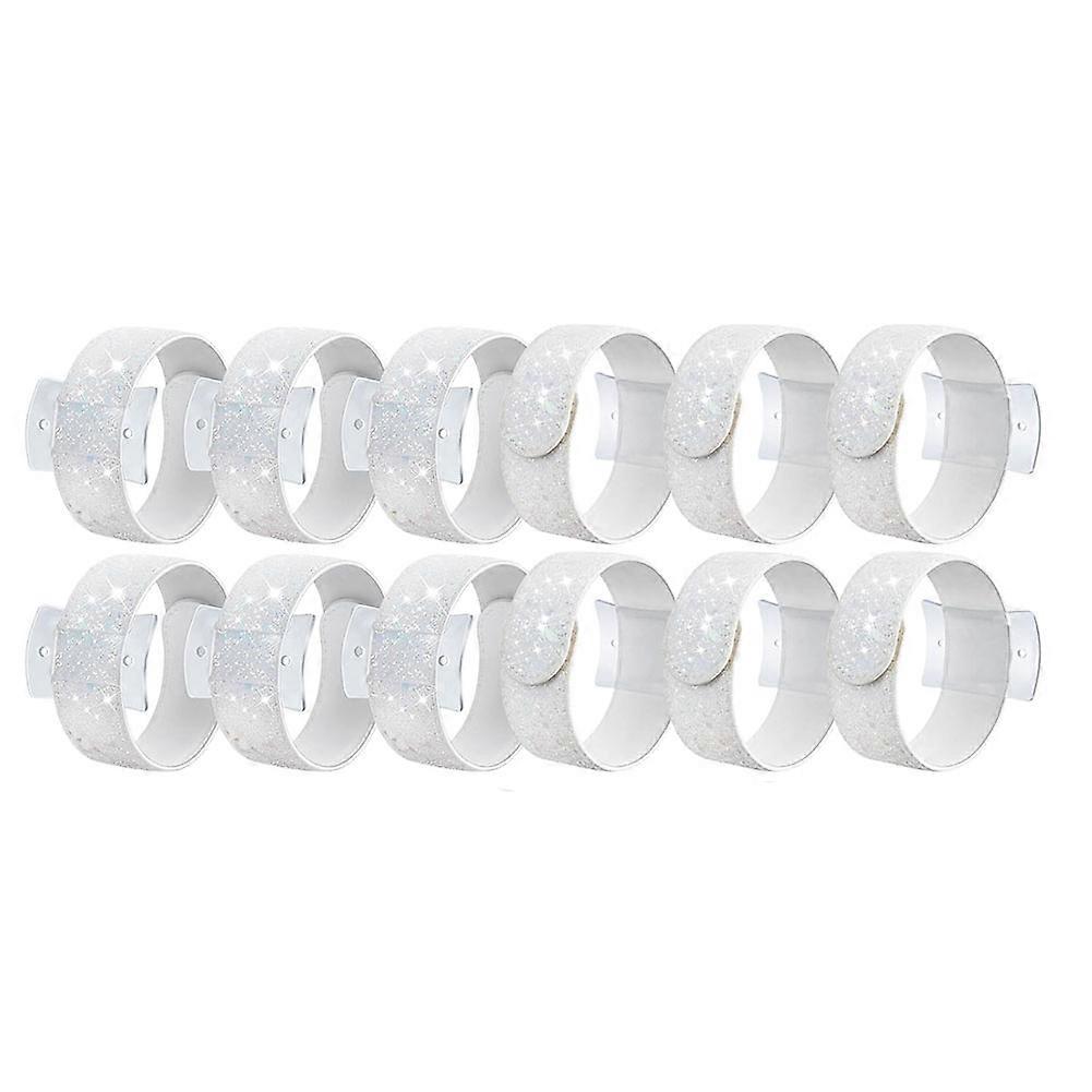 A Pack of Pure Elegance: our package includes 12 beautiful corsage wristlet bands; They are sized to fit around your wrist, for a beautiful and versatile appeal; Ideal to be paired with your party outfits or gifted to a loved one Customize and Show Your Style: equip yourself with a customizable accessory; Each wrist corsages for wedding comes with an acrylic base where you can DIY and affix your choice of artificial flowers with glue; Unleash your creativity and tailor a style that defines you Experience Comfort: lovingly crafted from soft, skin friendly faux leather, these wrist corsage bracelets are designed to wrap your wrist comfortably; They measure about 8.9 x 1 inches/ 22.5 x 2.5 cm and can easily be put on with just a tap of your wrist Shinning White Beauty: immerse in the these shinning white slap wrist corsage bracelets; The front side boasts a glittery look while the back exhibits a pure white texture; Choose either side to wear and add a touch of elegance to your ensemble for various parties; An Accessory for Celebrations: these wrist corsage bands are ideal for various of your special moments; Be it weddings, anniversaries, engagements, proms, ceremonies, birthdays, cocktail parties, or formal dinners; Use these beauties to elevate your style effortlessly; Color: White Material: plastic Package Contents: 12 Pieces Slaplet Wrist Corsage Bracelets Only the above package content, other products are not included. Note: Light reflection and different displays may cause the color of the item in the picture a little different from the real thing. The measurement allowed error is +/- 1-3cm.