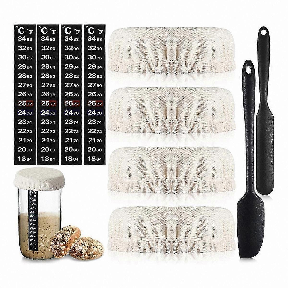 Sourdough Starter Kit Accessories with Cloth Lid, Temperature Strips and 2 Spatulas for 24 Oz Jars