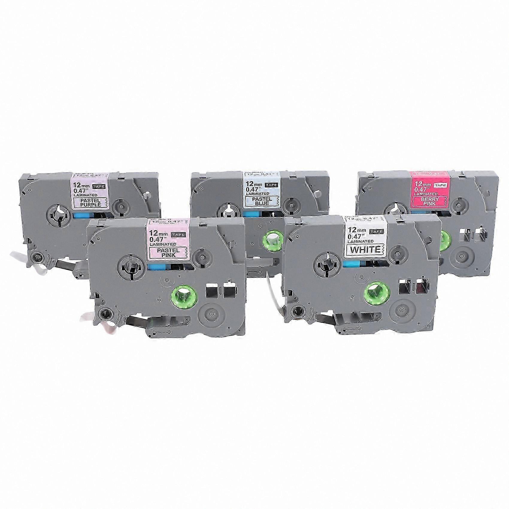 Replacement Label Tape for 12mm 1/2 Inch Laminated Printers (Berry Pink/Pink/Purple/Blue/White)