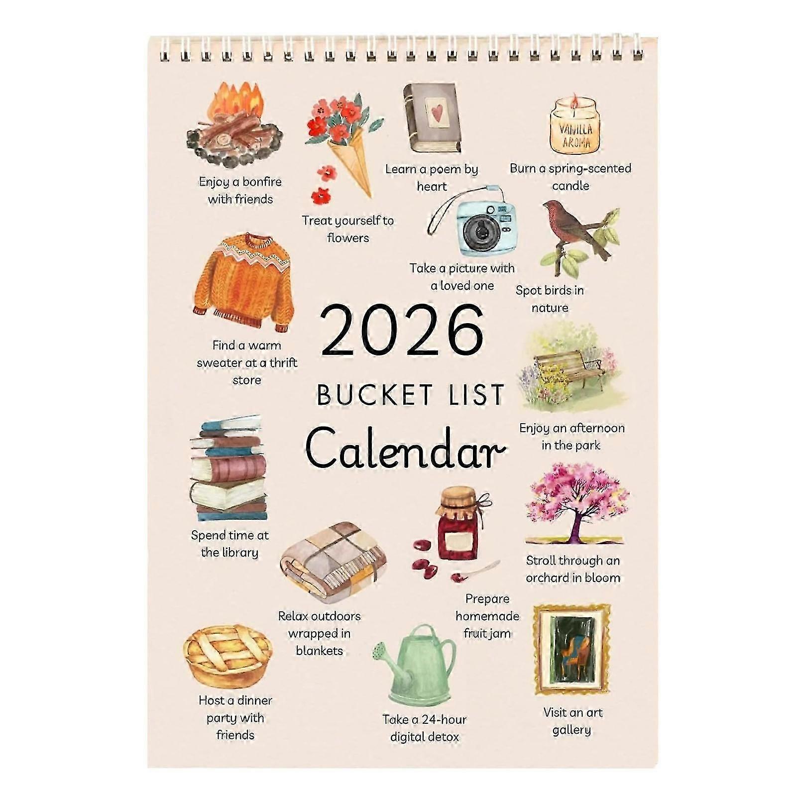 2026 Bucket List Calendar 2026 Inspirational 12-Month Wall Calendar with Illustrated Pages & DIY Friendly Design for Mindful Livingu
