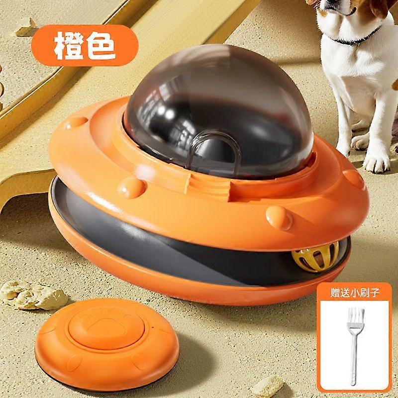Pet interactive toy, suitable for feeding cats and dogs. Features an electric disc with motion-sensing dispenser and bell interaction for pet cognitiv