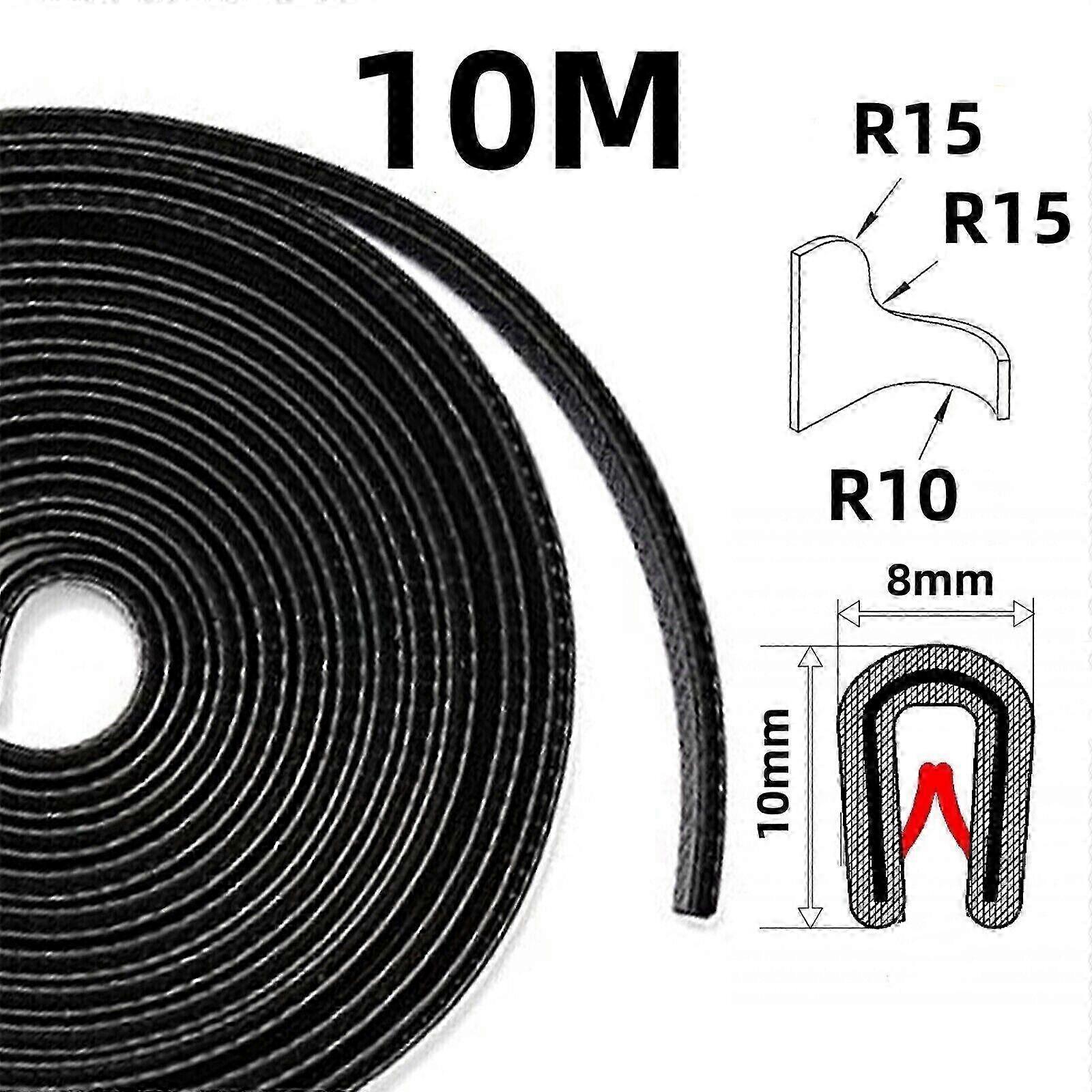 Description: Edge protection profile in black made of soft PVC - absolutely RUST-FREE thanks to POM plastic insert - clamping area 1-2mm/Dimensions 8x10 mm Flexible soft PVC clamping profile with POM insert - quick and easy installation - can be pressed over the edge by hand - no glue required - self-clamping Edge protection and seal made of soft PVC - weather-resistant, colour-fast, ozone-resistant, temperature-stable(approx. -30 to 70 degrees Celsius) A protective PVC strip, odorless and non-deformable, flexible and safe.The particularly delicate surface looks simple and elegant. Can be used in many areas: It protects all edges such as doors, windows, boats and metal edges. Easy installation: simply attach theSealing strips on the object in question.No fixing substances are required. Useful: The sealing strip is waterproof, soundproof, wear-free, heat and corrosion resistant. Note: Due to the light and screen setting difference, the item's color may be slightly different from the pictures. Please allow slight dimension difference due to different manual measurement.