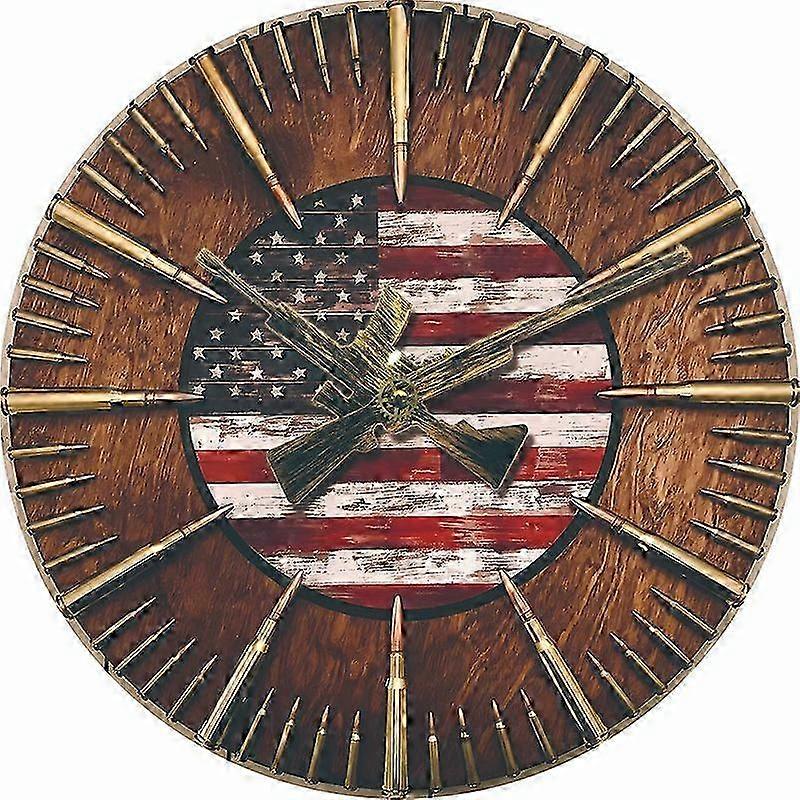 Time Of Honor Fanyil American Flag And Gun Clock Vianys Us Flag Patriotic Clock Flags Round Vintage Clock Decorative Wall Clock 25-26s