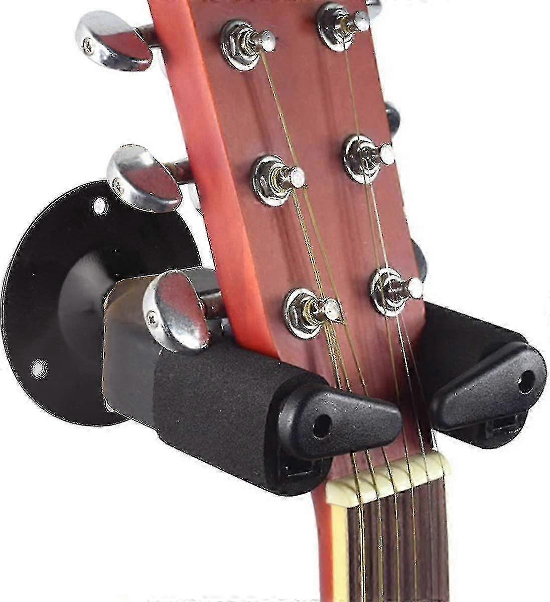 Durable Material: The guitar hook is made of environmental protection nylon and ABS. Non-slip wear resistance, strong and durable. EVA Foam Double Hooks Design: Guitar wall mount with padded arms design, to ensure your guitar rocks gently and protects it from scratches. With double hooks to prevent falling, make your guitar safer. Wall-mountable design: The universal wall-mountable guitar stand saves your space and makes it easier and easier to use the guitar. brEasy to Install: Includes mounting screws and drywall anchors, all you need is a screwdriver. You can easily install this guitar hook in few steps on the concrete or wood wall. Universal Guitar Stand: The guitar stand is suitable for acoustic guitar, classical guitar, electric guitar, bass. The load capacity of the guitar stand is between 1-15 kg. Note: Due to the light and screen setting difference, the item's color may be slightly different from the pictures. Please allow slight dimension difference due to different manual measurement.