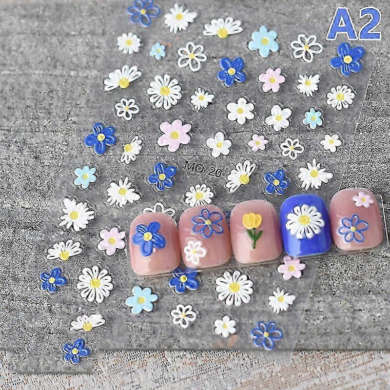 Nail Art Flower Daisy Embossed Stickers Nail Sliders Decals Daisy Florals Petals Flowers Back Glue Nail Sticker Decoration 25-26s