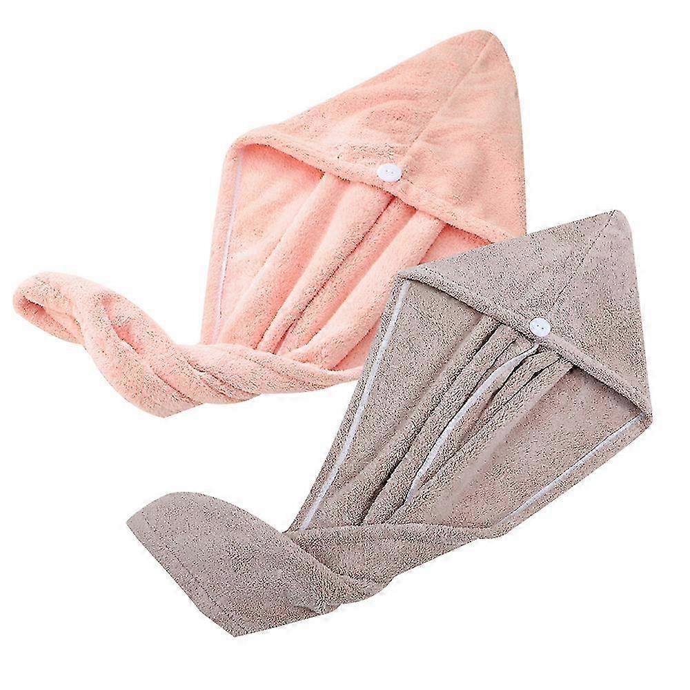 Coral velvet hair towel, dry hair towel with button, dry hair cap, bath cap 2PCS 25-26s
