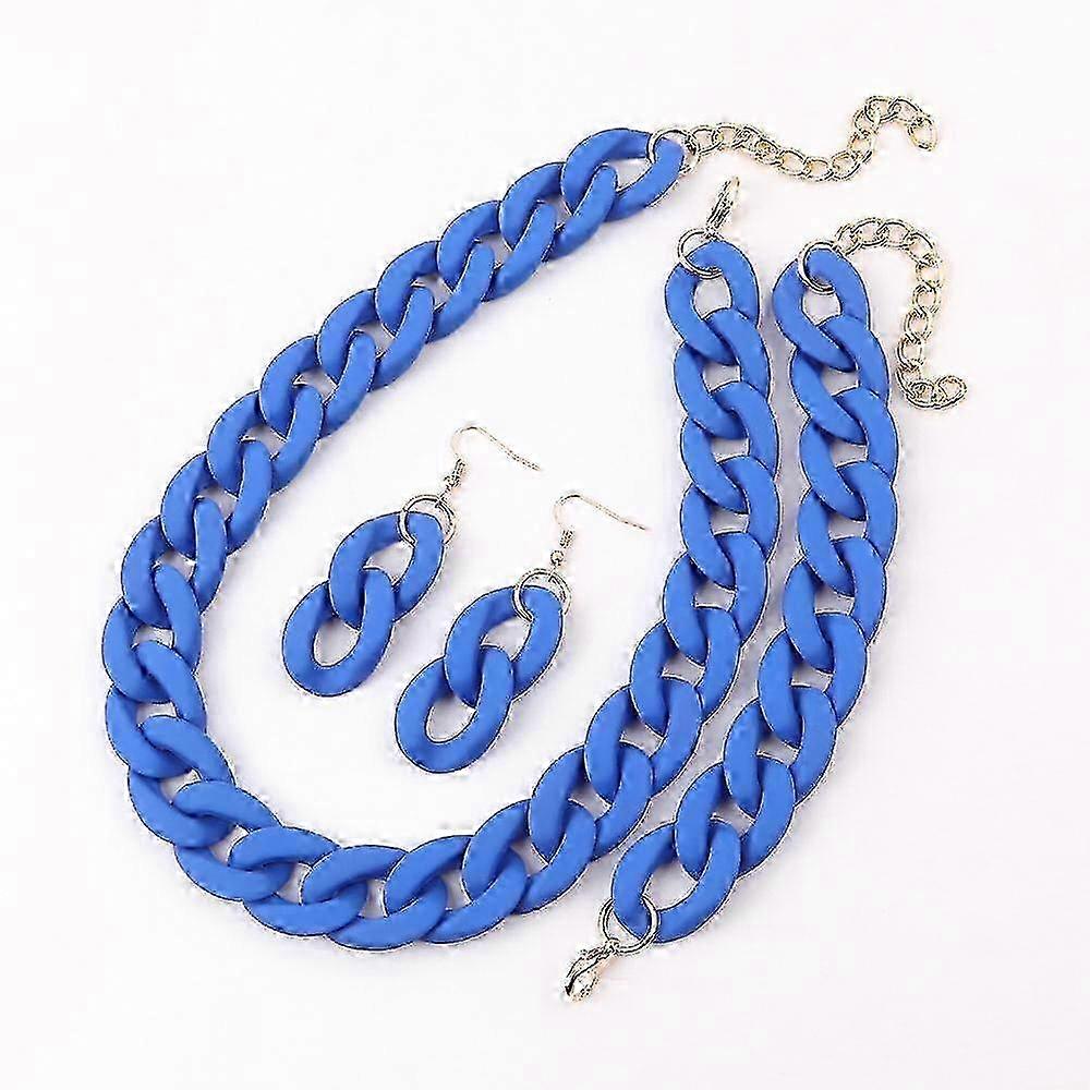 Bohemian Style Acrylic Necklace Set with Chunky Chain Choker Earrings and Bracelet for Women 25-26s