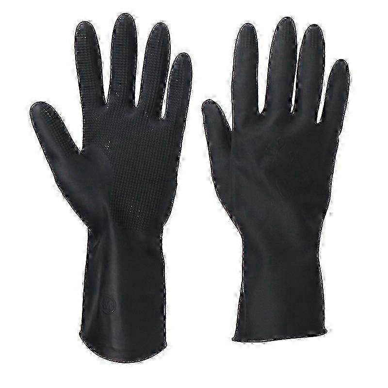 Hair Dye Gloves, Black Reusable Salon Hair Coloring Latex Gloves, Thick Rubber Gloves For Cleaning Cooking Dishwashing(2set,black) Widely-Used Gloves-- Designed for salon hair dyeing and coloring. Perfect for lab work and home use like cleaning,cooking, tattooing, food preparation, painting, pet care, home improvement, arts and crafts, outside gardening.Reusable Personal Protection Gloves-- Reusable and washable, elastic gloves fits for all people's palm. It is chemical resistance gloves it will protects your hands from harsh detergents, hot water, household cleaners, bleach dye.Material-- Black powder-free natural latex gloves; acid and alkali resistance, wear-resistant, durable, strong toughness, thickness with superior strength, tear resistant.Anti-Skid Gloves-- The entire glove is finely textured (including palms and fingers) to provide consistent grip on glass wear, small objects, instruments and tools. 10 inch longer 3 inch cuff for extra protection, smooth interior finish for easy donning.Delivery quantity: 2setProduct color: blackProduct size: 27*8.5cm Note: Due to the light and screen setting difference, the item's color may be slightly different from the pictures. Please allow slight dimension difference due to different manual measurement.