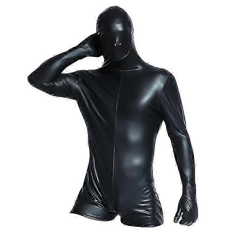 Men Sexy Black PVC Latex Catsuit with Mask PU Faux Leather Bodysuit Gay Erotic Fetish Zipper Jumpsuit Party Night Club Wear myi