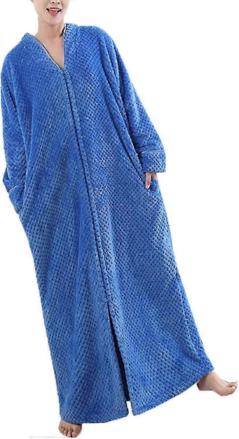 Ladies Zip Fleece Waffle Long Dressing Gown Fluffy Towelling Bathrobe Sleepwear myi