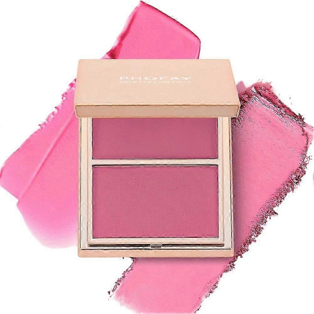 Dual-Color Contour & Blush Palette Matte Finish Hypoallergenic Compatible Sensitive Skin With Sponge Brush myi