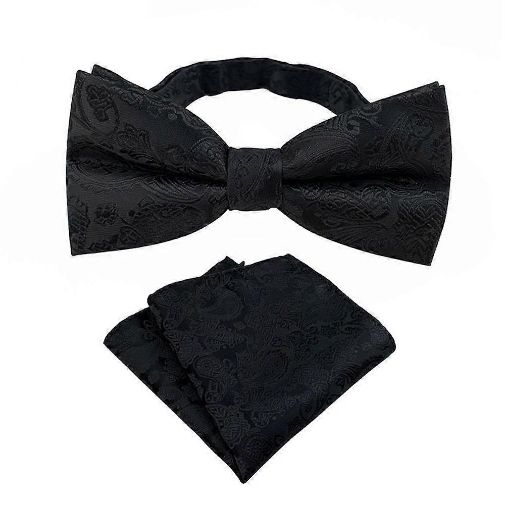 Men's Floral Jacquard Pre-Tied Bow Tie and Pocket Square for Weddings and Business