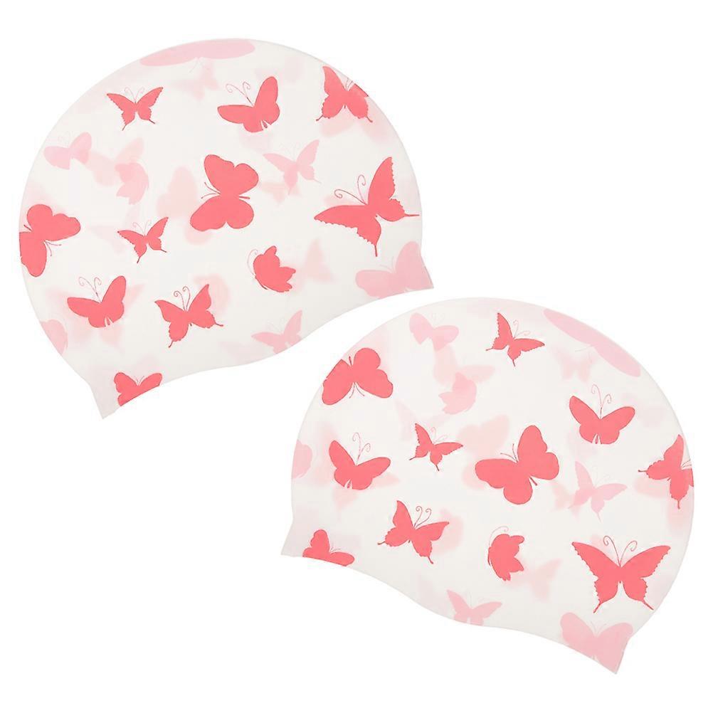 Silicone Swim Cap For Family Members Adult Swimming Hat Stylish Printed .4X7.7X0.3in Sun Protection 8 Pcs