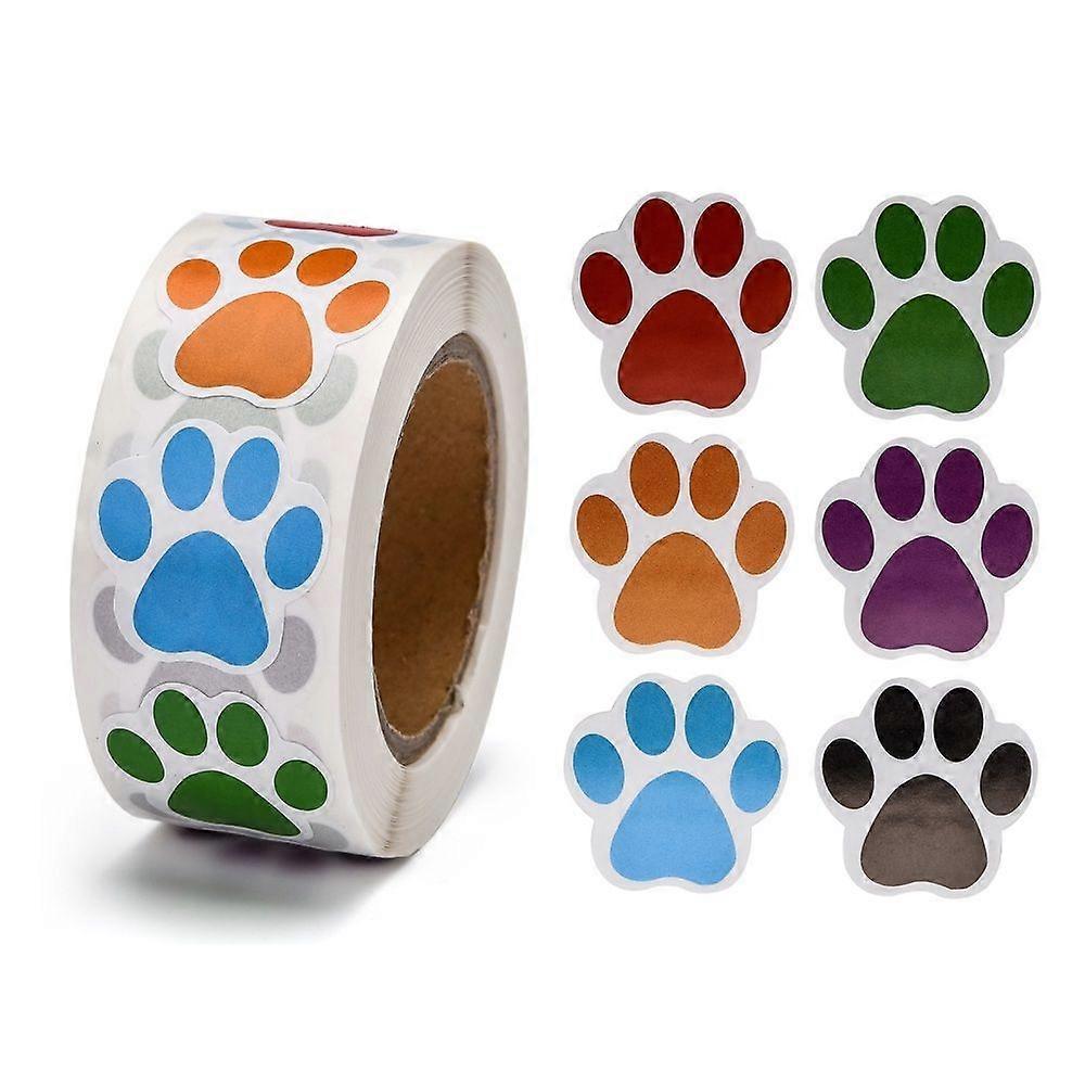 Self-Adhesive Paper Gift Tag Stickers Adhesive Labels for Festive Hoilday Wedding Presents Paw Print Colorful Sticker: 25x26mm about 500pcs/roll