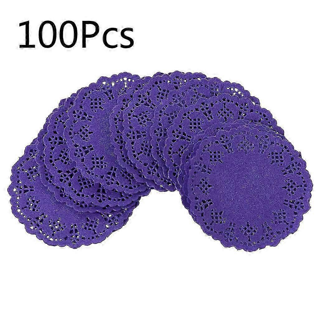 3.5'' Colored Flower Lace Round Paper Doilies Placemat Craft Doyleys Wedding Birthday Tableware Decoration 100pcs Purple 25-26