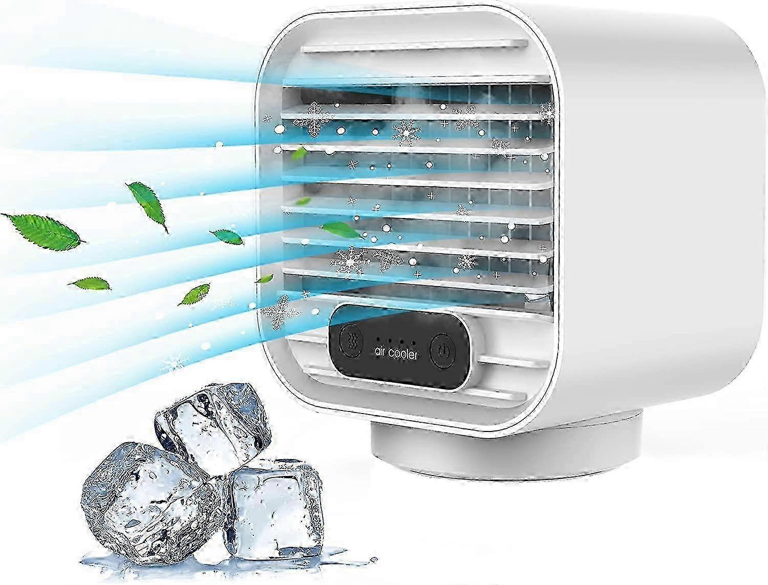 HERLLY Portable Air Cooler,3 Speeds Mini Air Conditioner Personal Evaporative Cooler,Desktop cooling Fan with USB Rechargeable Batterywhite