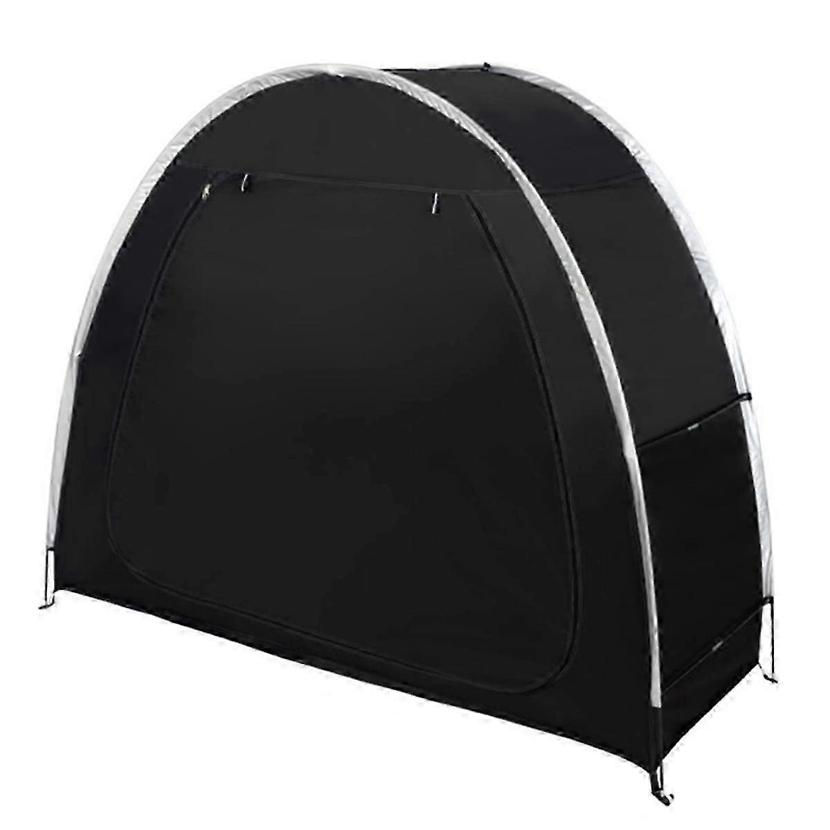 SPACIOUS STORAGE SPACE: This 200 x 80 x 165CM tent offers a bike shed that can easily store two adult bikes. You can also store motorcycles, long-handled gardening tools, pool toys and other outdoor equipment. PROFESSIONAL AND MATERIAL: The bike tent is made of professional 210D oxford fabric, which can provide protection for your bikes, motorcycles, tools and so on; this storage tent can extend the service life of your bikes, motorcycles, various tools. EASY AND CONVENIENT TO ASSEMBLE: Our bike tent can be assembled in just 10 minutes without any tools, making it a versatile alternative to bulky metal/wood carports and outdoor storage spaces. STABLE DESIGN: Each outdoor bike storage tent has a set of eyelets to securely fasten it to the ground, fence or wall to protect it from strong winds. Meanwhile, this bike storage tent provides a stable frame and windproof ropes to prevent tipping and collapsing caused by strong winds. HUMANIZED DESIGN: Metal zippers for durability, oxford fabric to keep out the sun, waterproof fabric to withstand bad weather, and a rear ventilation window for easy viewing of the inside of the tent. Color: Black Material: Oxford cloth Package Contents: 1 x Outdoor Portable Bicycle Storage Sheds Kit Only the above package content, other products are not included. Note: Light reflection and different displays may cause the color of the item in the picture a little different from the real thing. The measurement allowed error is +/- 1-3cm. Note: Due to the light and screen setting difference, the item's color may be slightly different from the pictures. Please allow slight dimension difference due to different manual measurement.