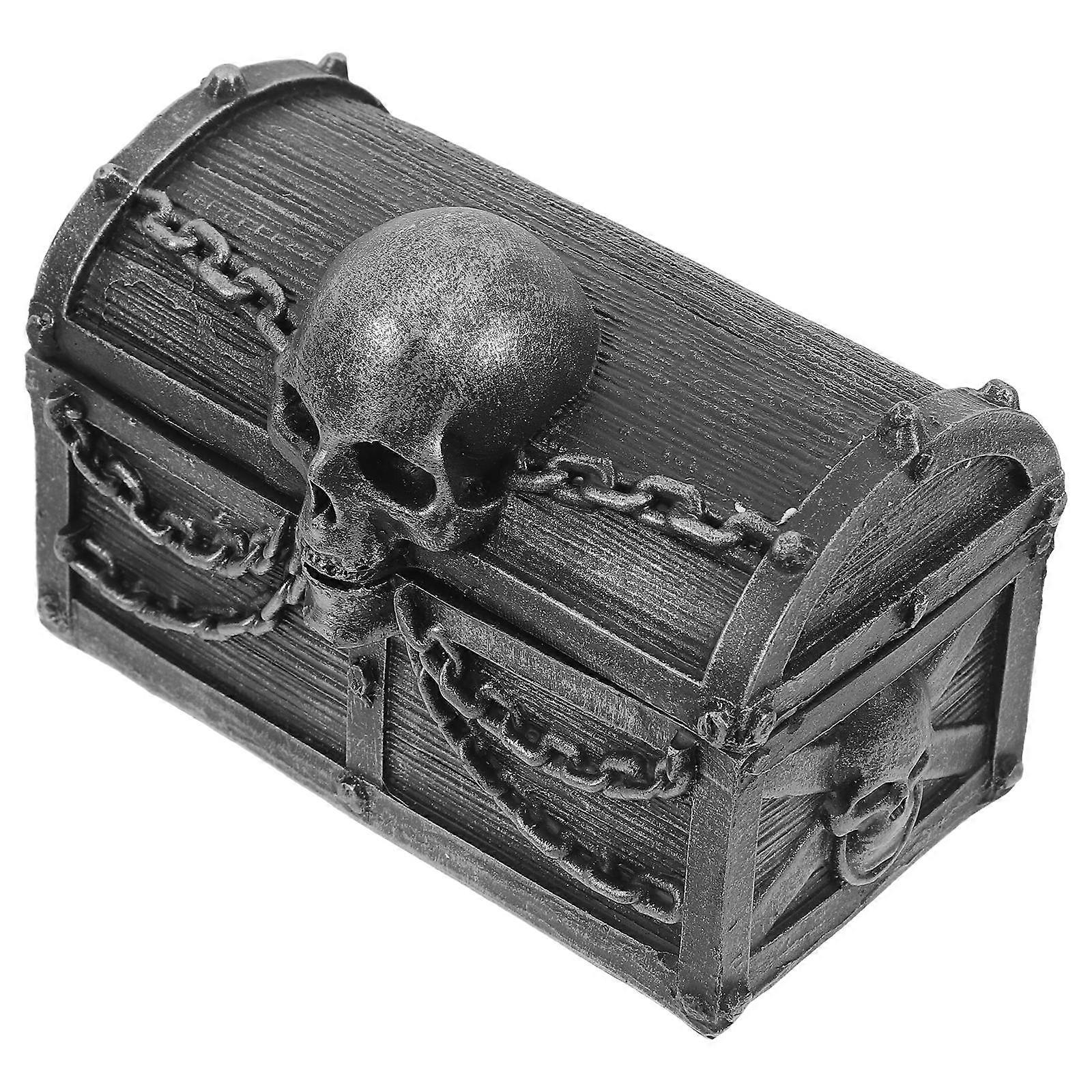 This skeleton-inspired storage box offers a unique way to keep your belongings organized while adding a touch of pirate charm to your decor. Its sturdy construction and artistic design make it ideal for storing small treasures, jewelry, or trinkets, while serving as a conversation starter in any room or workspace. Features -Color:Black -Material:Resin -Size:12.00X8.50X7.00cm/4.72X3.34X2.75in -Comprehensive storage solution: ideal for organizing various items such as jewelry, trinkets, and other small belongings. -Distinctive skull shape: the skull design adds a unique and stylish element to your home or office decor. -great for desktops: enhances the look of your workspace by serving as both a functional organizer and a decorative piece. -Sturdy and easy to maintain: crafted from hardwearing resin, ensuring durability and simple cleaning. -Portable and convenient: compact and lightweight, making it easy to transport and place in different areas. Package list: 2 x skull treasure chest