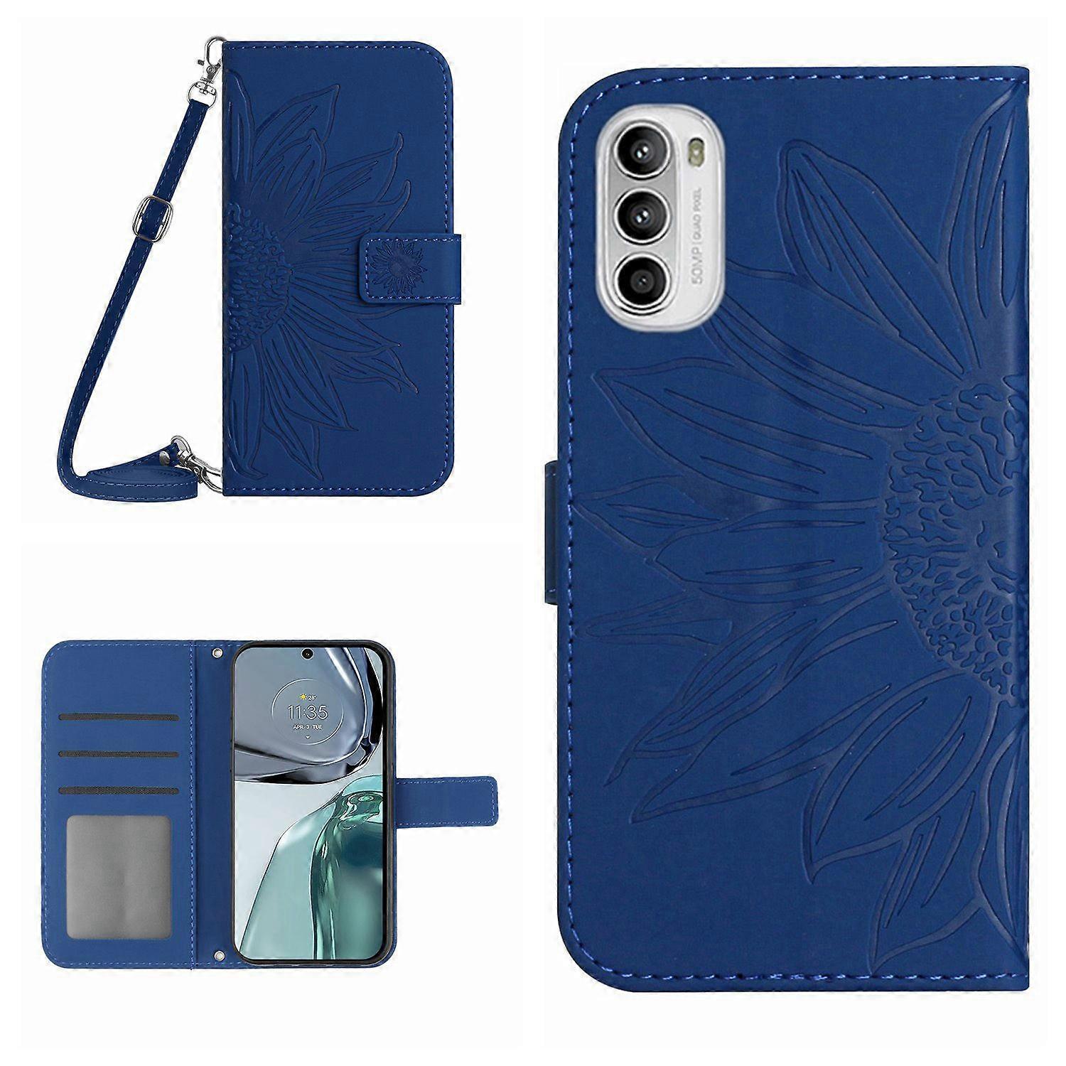 Imprinted Sunflower Phone Case for Motorola Moto G62 5G, Wallet Feature Skin-touch PU Leather Stand