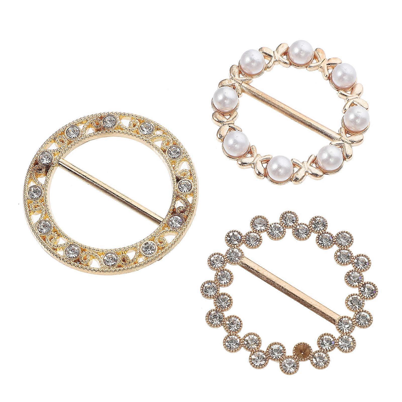 Golden Scarf Buckle with Rhinestone for Decor Durable Zinc Alloy 3 Pieces