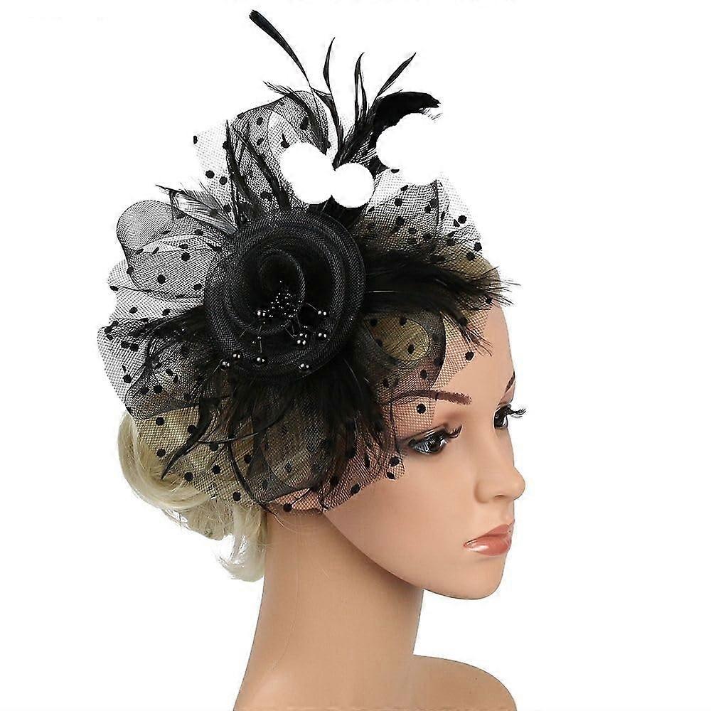 Black Fascinator Headband with Elegant Net Feather Mesh Flower for Wedding Cocktail Tea Party