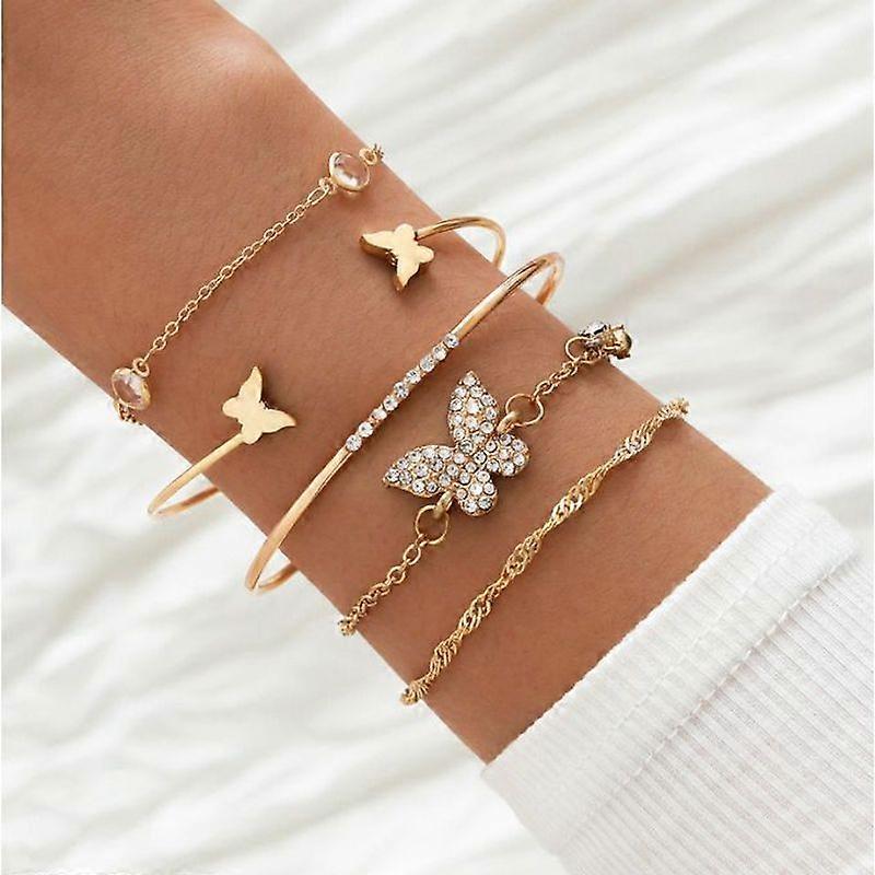 Luxora 5Pcs/set Ladies Bracelets Butterfly Lover Bead Chain Bracelet Jewelry -Rose Gold