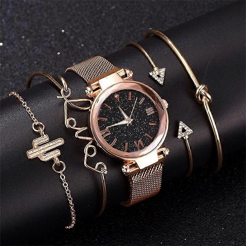 Luxora 5pcs Set Luxury Women Watches Magnetic Starry Sky Ladies Quartz Wristwatch