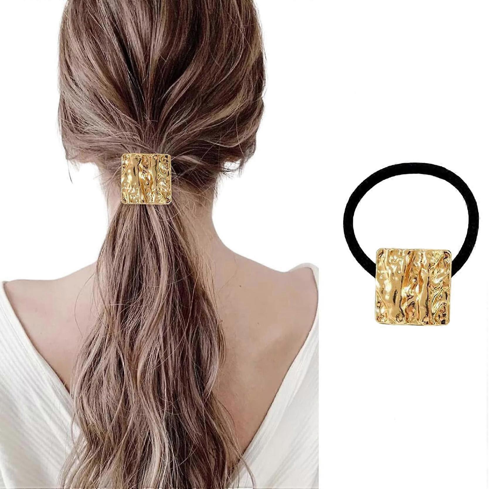 Gold Hair Tie with Metal Hair Cuff, Polished Gold Ponytail Holder for Women, Secure Hold (Gold 06)