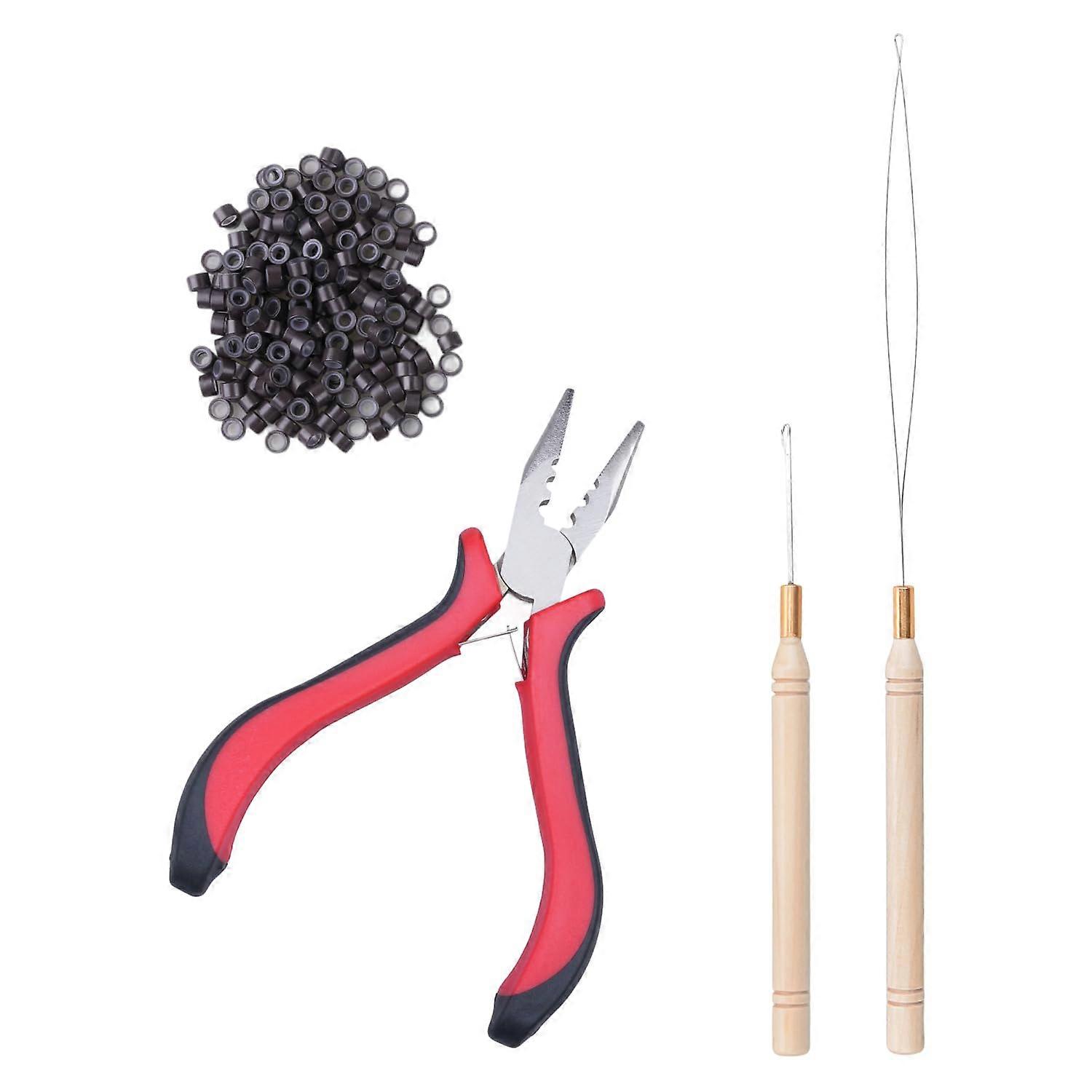 Hair Extension Tools Kit with Precision 3Hole Plier and 200 Brown Micro Rings for Extensions