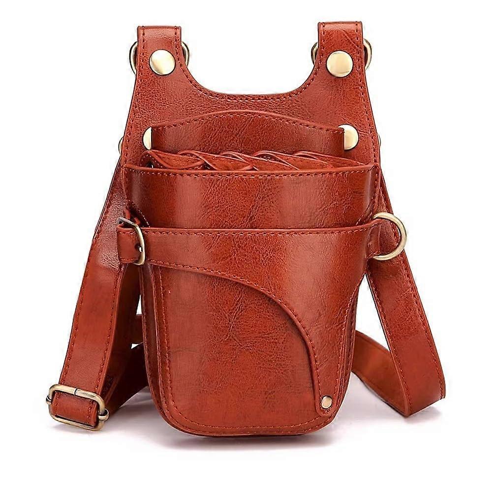 Hairdressing Scissors Bag Leather Holster Professional Barber Tool Waist Pouch Brown