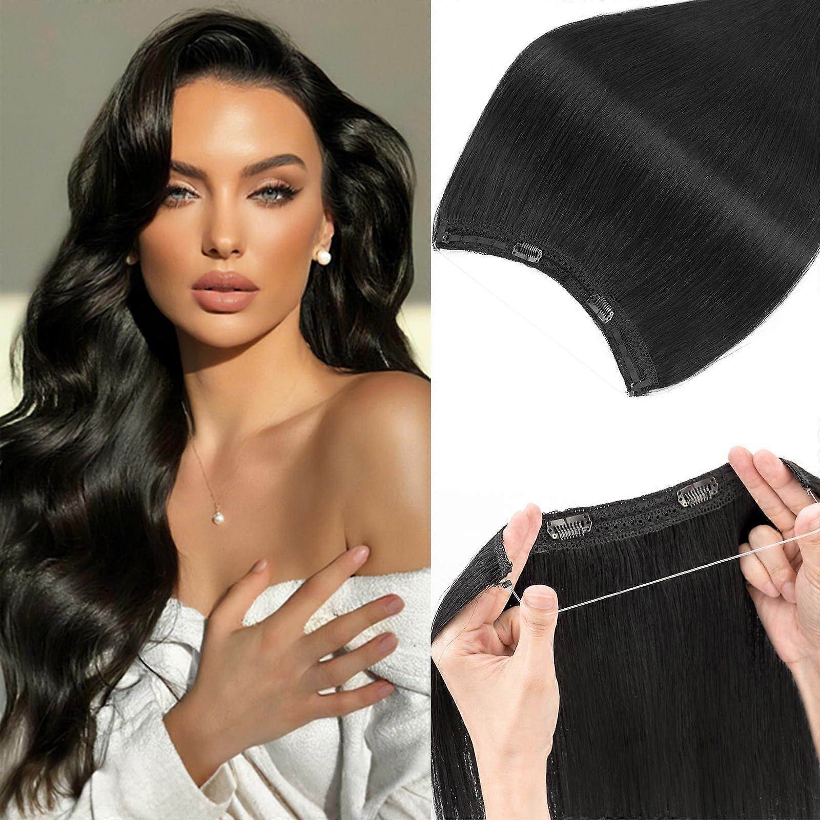 Halo Hair Extensions 100% Real Human Remy Hair Invisible Wire One Piece 11 Inch Jet Black