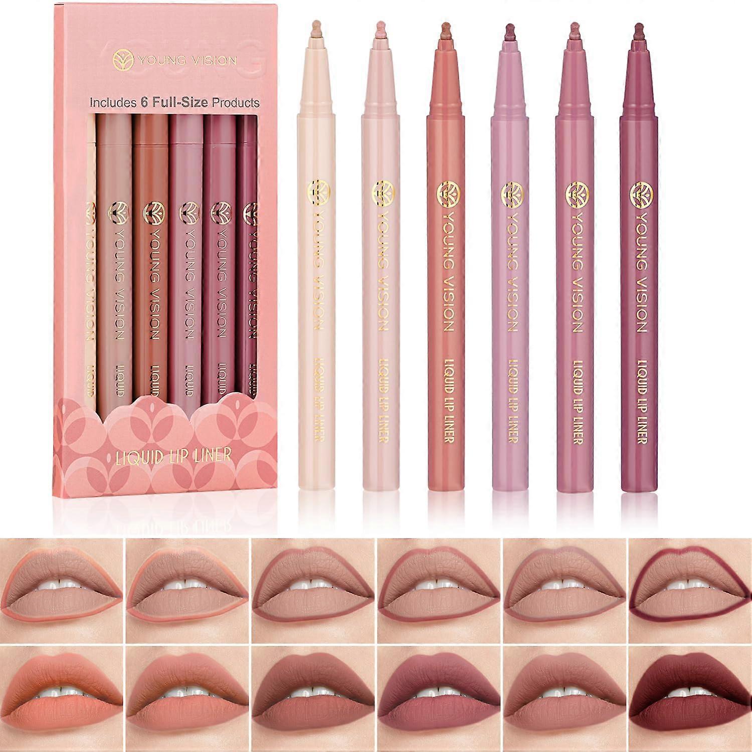 Waterproof Nude Brown Matte Lip Liner Set – 6 Long Lasting Shades with Precise GourdShaped Tip