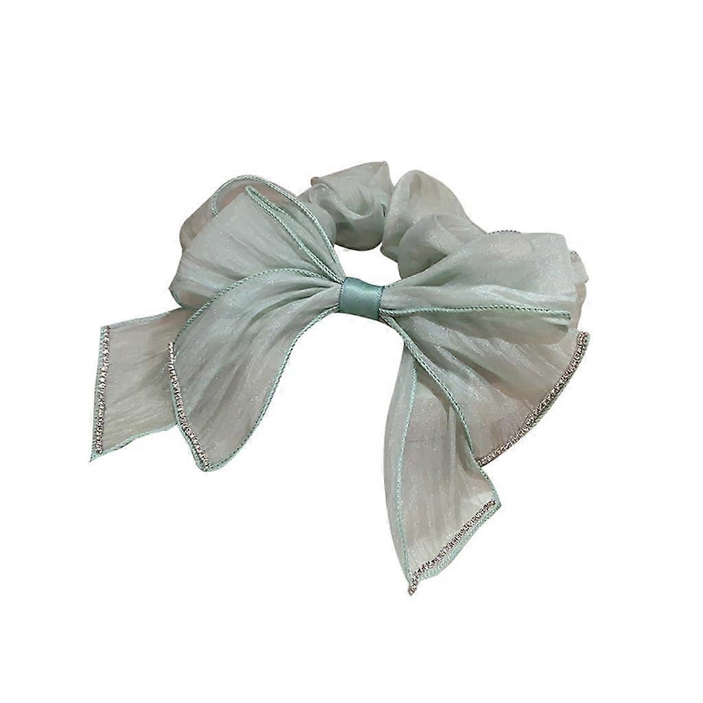 Hair Scrunchie with Multilayer Ribbon and Diamond Accent, Soft Fabric Ponytail Holder