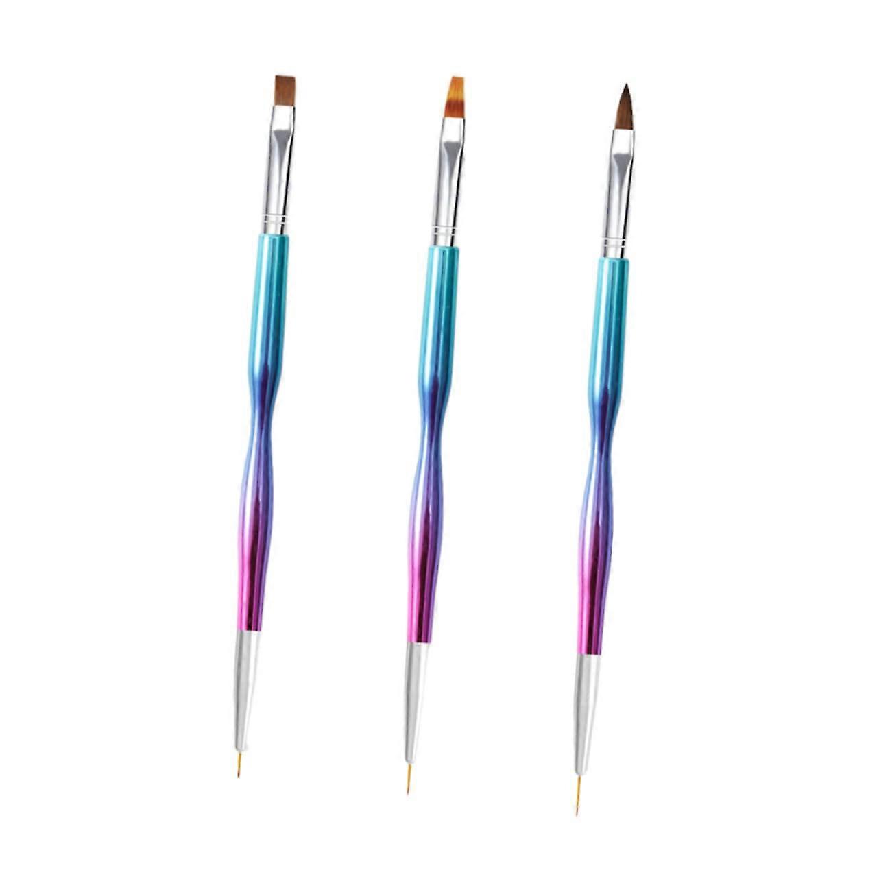 3Pcs Double Ended Nail Art Brush Set with Dual Tip Design for DIY Professional Manicure