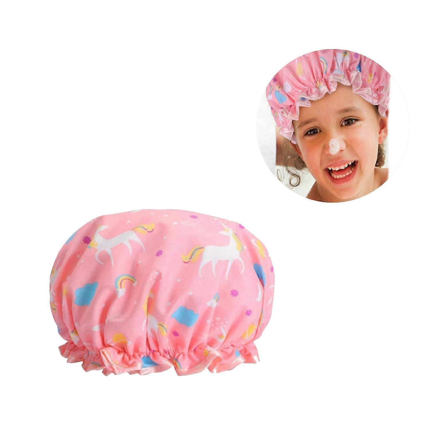 Waterproof Shower Cap for Long Hair Women and Kids, Reusable Set of 2 Unicorn Design with Lace