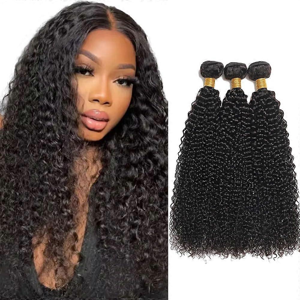 Kinky Curly Human Hair Bundles Natural Black Peruvian Virgin Extensions Double Weft 12 14 16 Inch