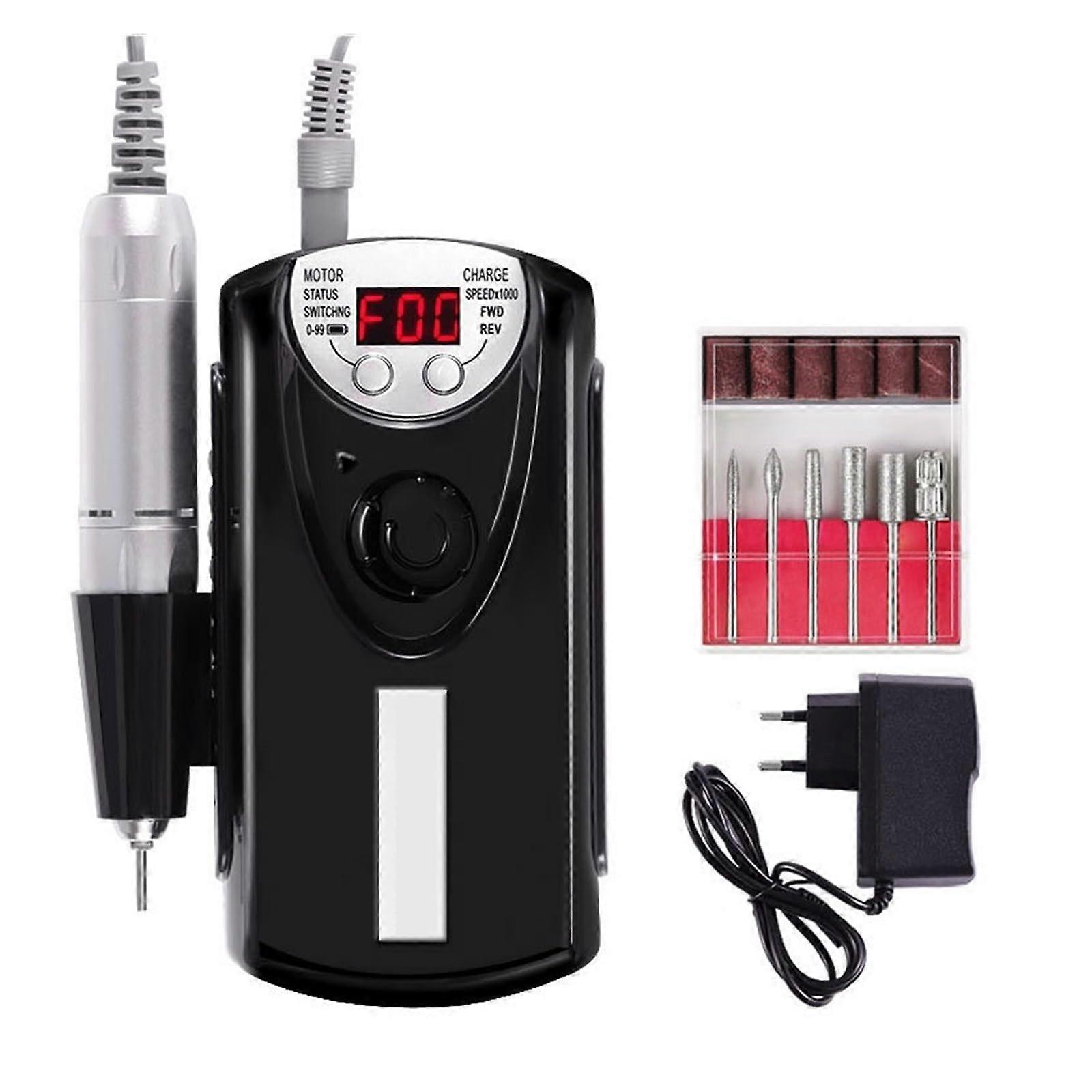 Electric Nail Drill 30000 RPM Rechargeable Professional Nail File for Acrylic and Gel Nails Black