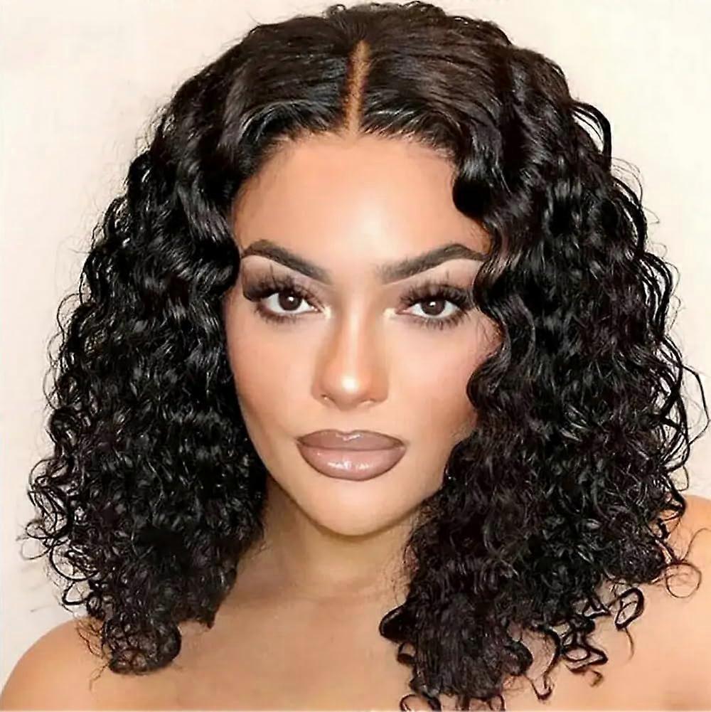 Human Hair Lace Front Bob Wig 13x4 Transparent Lace 10 Inch Pre Plucked Kinky Curly 150% Density