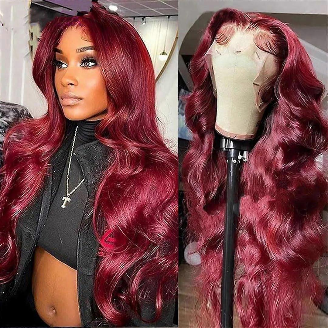 13x4 Burgundy Human Hair Lace Front Wig 18 Inch 250% Density Preplucked HD Transparent Lace