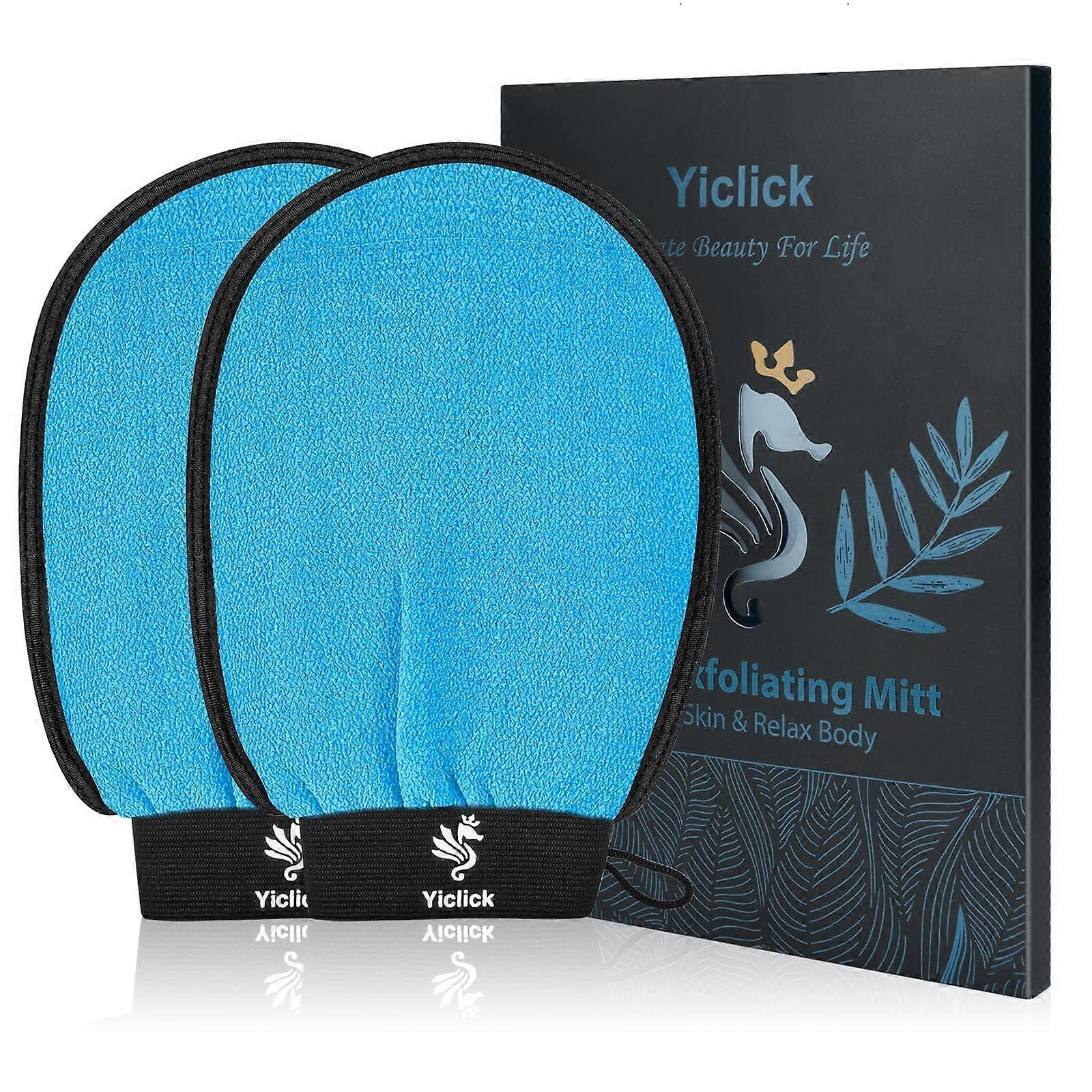 Exfoliating Gloves 2 Pcs for Dead Skin Removal, Korean Body Scrubber Mitt Blue for Shower