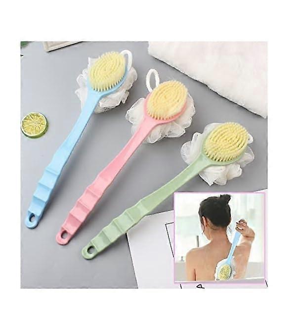 2 in 1 Double Sided Bath Brush with Loofah, Long Curved Handle Shower Scrubber for Gentle Exfoliation