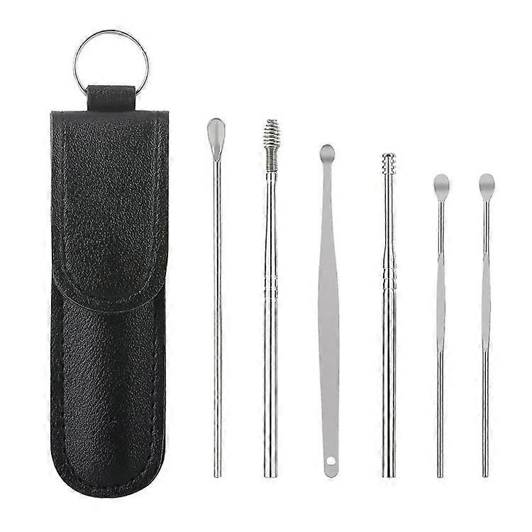 Ear Wax Removal Kit with Metal Scoop and Spiral Tips, 6pcs Ear Cleaning Tool Set with Case