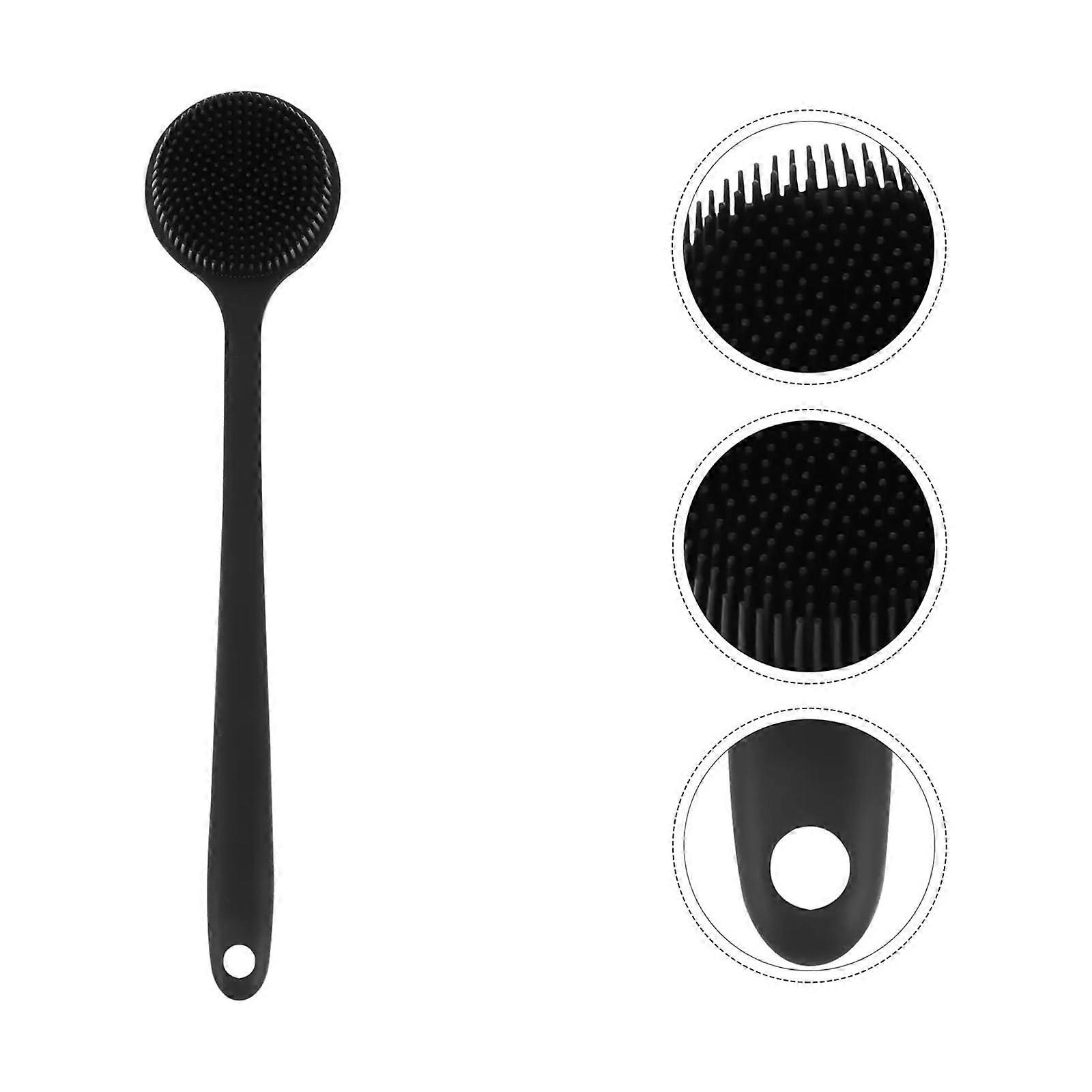 Silicone Bath Brush Long Handle Body Scrubber for Back Cleaning and Gentle Exfoliation Black