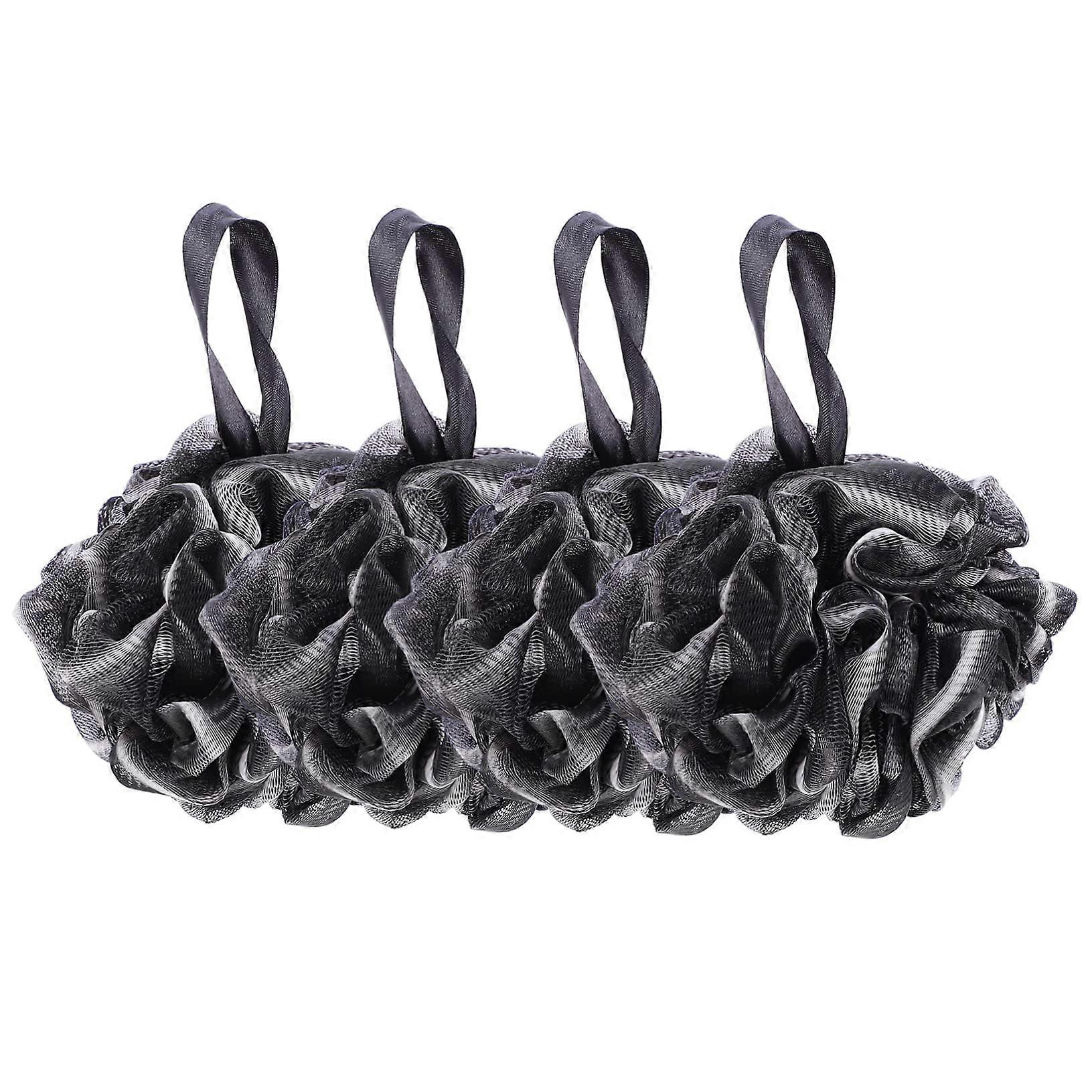 4pcs Black Bath Loofah Shower Pouf Set with Soft Mesh for Gentle Exfoliation and Rich Lather